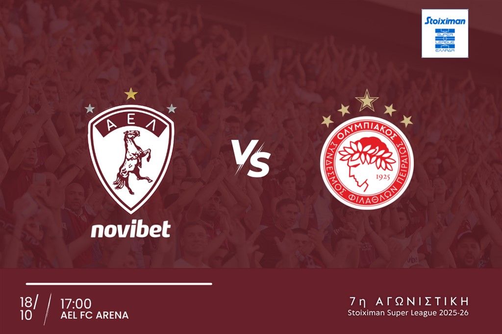 Η ΠΑΕ ΑΕΛ Novibet ενημερώνει τους φιλάθλους της ότι ξεκίνησε η διάθεση των εισιτηρίων του αγώνα της 7ης Αγωνιστικής του πρωταθλήματος Stoiximan Super League με αντίπαλο τον Ολυμπιακό στο AEL FC ARENA (18/10, 17:00).