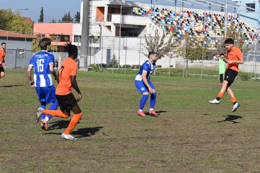 Στο αγωνιστικό στο πρώτο μέρος είχε την υπεροχή ο Απόλλων Λάρισας και δημιούργησε καλές ευκαιρίες για γκολ. Στο 23’ ο Γκουντίκας έκανε το σουτ, έδιωξε σε κόρνερ ο Θεόφιλος Τσιάρας. Στο 27’ τη σέντρα – σουτ του Σέσι, πρόλαβε και έδιωξε σε κόρνερ πάλι ο κίπερ.