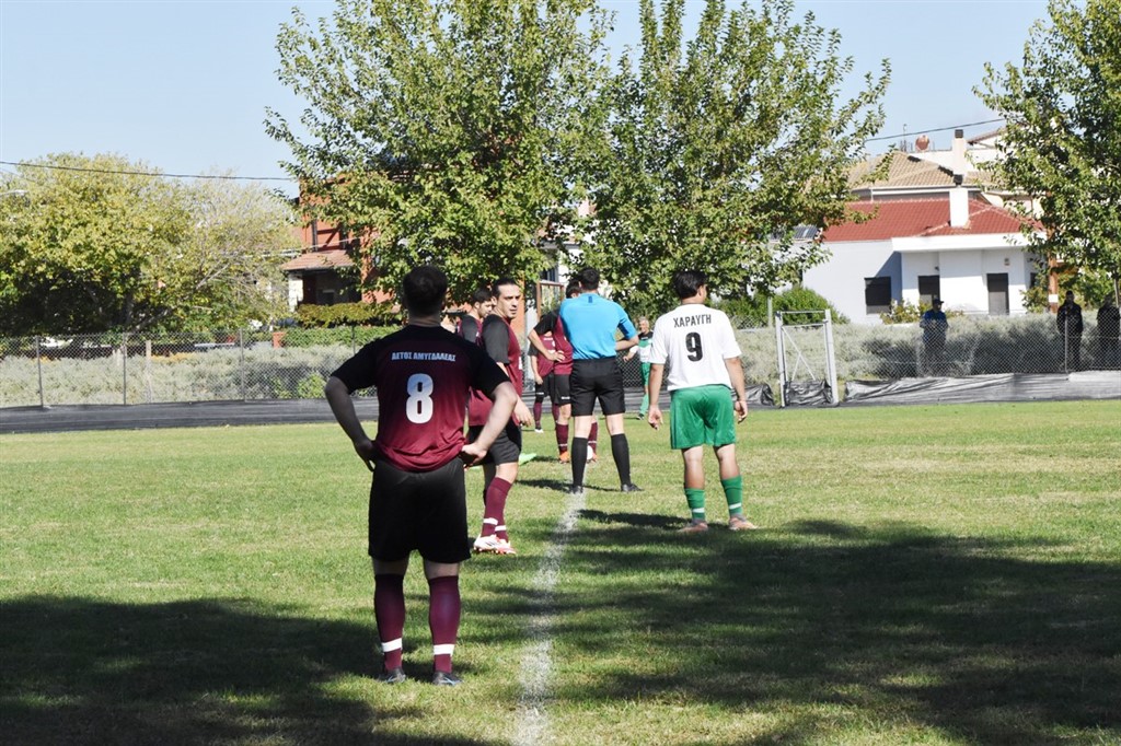 Στο 30’ έντονες διαμαρτυρίες από τους φιλοξενούμενους για τον Δημήτρη Σιούτα, που ανατράπηκε όπως υποστηρίζουν μέσα στην περιοχή, ο διαιτητής συνέχισε το ματς, αφού ήταν κοντά. Στο 33’ ο Καραγκιόζης ήταν ο μοιραίος παίκτης για την Αμυγδαλέα, αφού σε γύρισμα που πήγε να κάνει, έστειλε τη μπάλα στα δίχτυα και έκανε το 1-1 (αυτογκόλ).