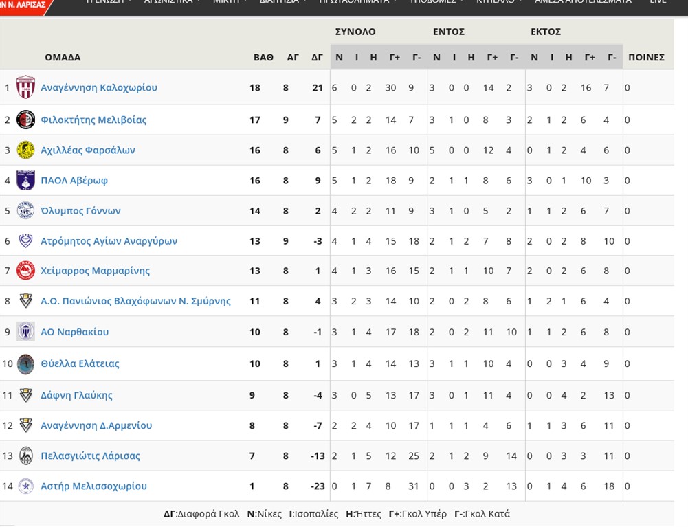 Δείτε αναλυτικά τα σημερινά αποτελέσματα στην Β’ ΕΠΣΛ (22/11) στο πλαίσιο της 9ης αγωνιστικής.