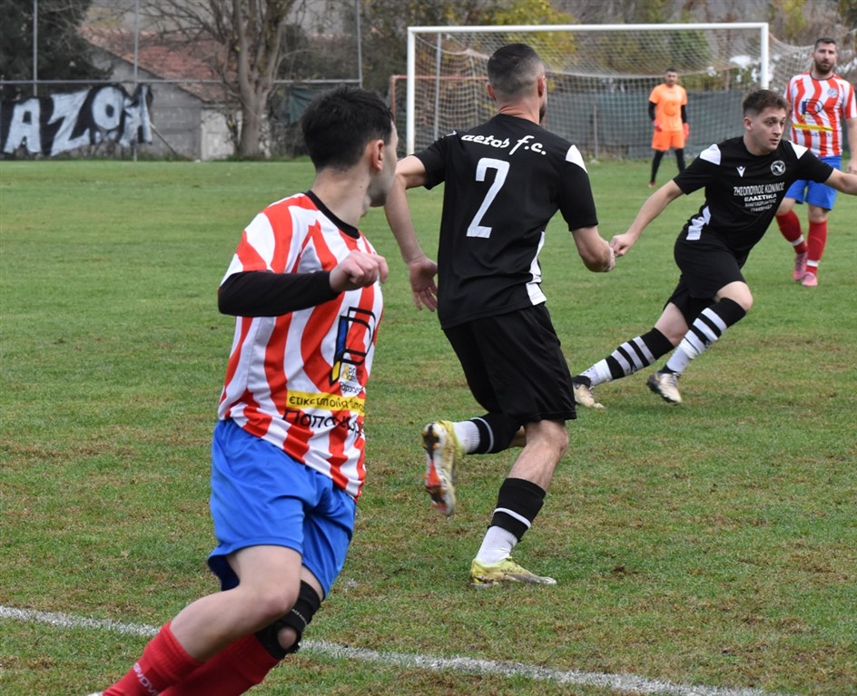 Στο 28’ ο Αετός είχε την «απάντηση», ύστερα από την ωραία σέντρα του Γιάννη Πούλου, στη «πλάτη» της άμυνας, ο έμπειρος παίκτης Δημήτρης Γκαμπούρας μπήκε ανάμεσα στα δύο στόπερ και με φοβερή κεφαλιά έφερε το ματς στα ίσια για το 1-1.