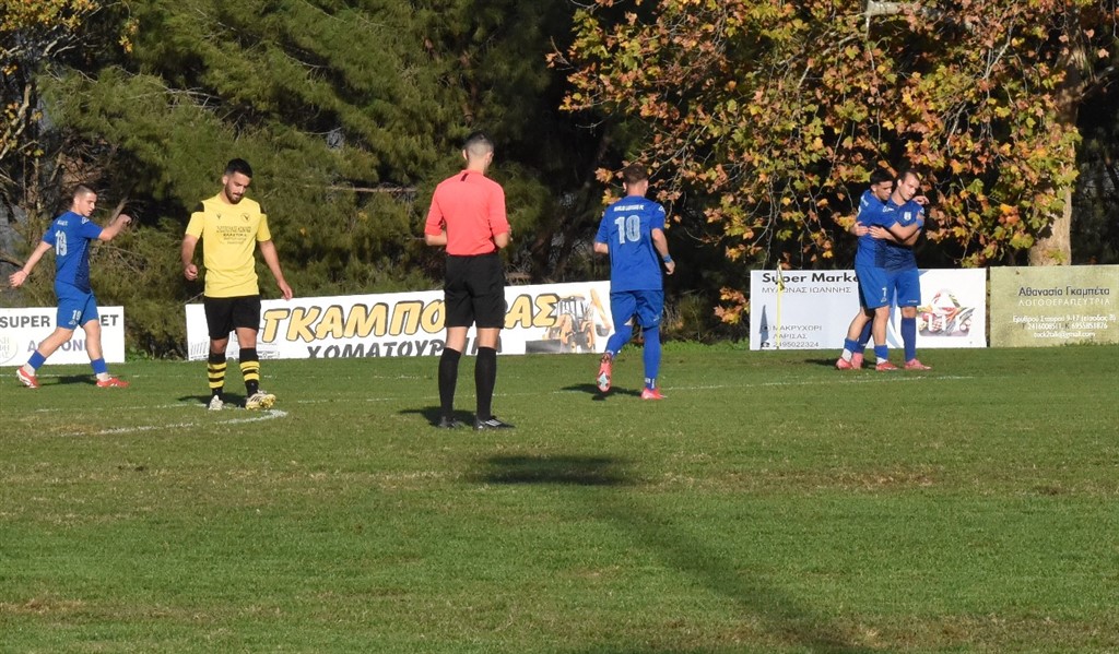 Το ημίχρονο ήταν «φτωχό» πλην τίμιο για τον Ηρακλή Λάρισας που πάλεψε με όσες δυνάμεις είχε. Στην επανάληψη στο 52’ ωραία σέντρα του Γιώργου Αλεξίου και ο Στέλιος Παναγιώτου με προβολή έφερε το ματς στα ίσια για το 1-1.