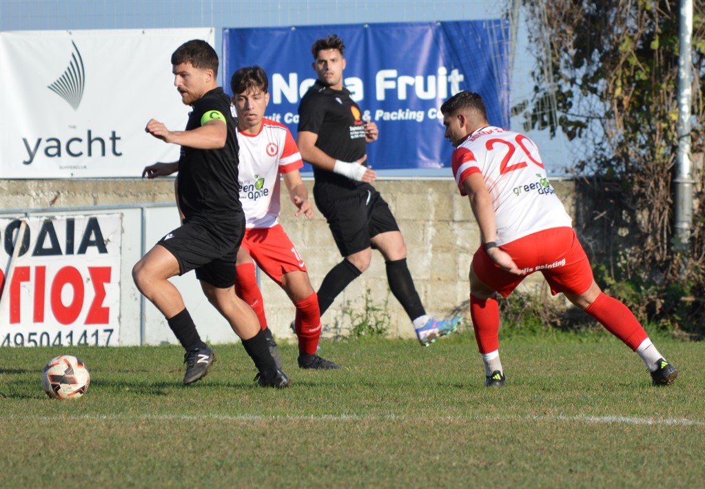 Στο 1’ την κεφαλιά πήρε ο Κατέλας η μπάλα πήγε στο δοκάρι και στην επαναφορά της μπάλας ο Κόκκινος με ωραίο σουτ έκανε το 1-0.