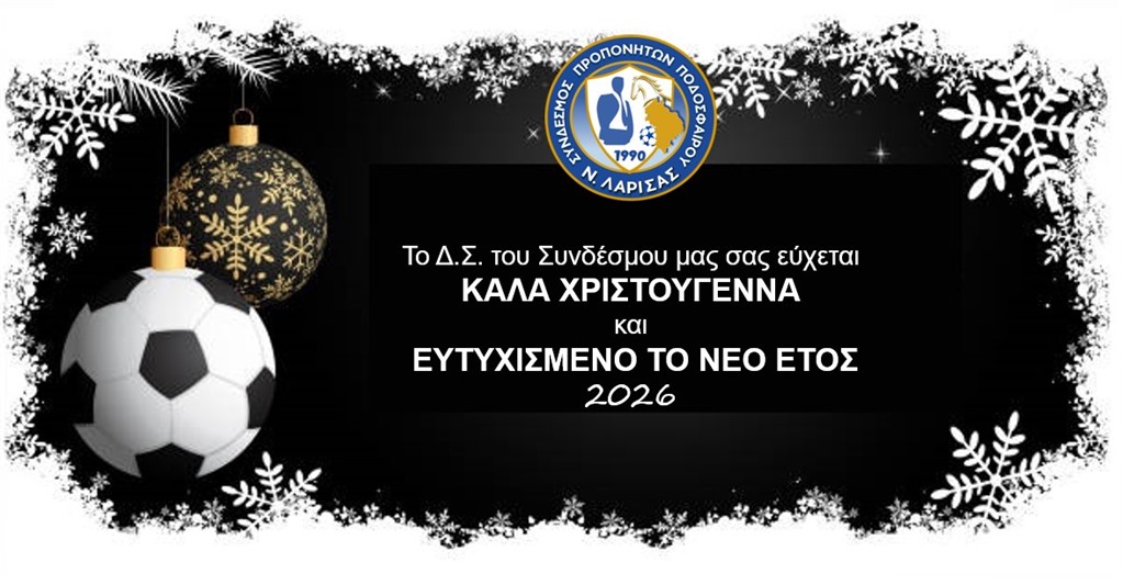 Ο Σύνδεσμος Προπονητών Ποδοσφαίρου Ν. Λάρισας σας εύχεται Καλά Χριστούγεννα και ευτυχισμένος ο νέος χρόνος.