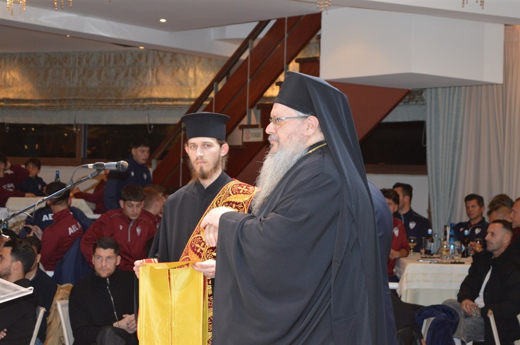 Η αίθουσα γέμισε ασφυκτικά από μικρούς και μεγάλους φίλους της ΑΕΛ, με έντονη την παρουσία των παιδιών των ομάδων Νέων της ΠΑΕ (Κ19, Κ17, Κ15), καθώς και της Ακαδημίας του συλλόγου. Τις πίτες ευλόγησε ο Μητροπολίτης Λαρίσης και Τυρνάβου Ιερώνυμος.