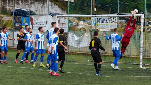 Οι φιλοξενούμενοι μπήκαν δυνατά στο παιχνίδι και κατάφεραν να αιφνιδιάσουν νωρίς. Μόλις στο 10ο λεπτό, μετά από εξαιρετική σέντρα του Καμπέρη, ο Μπιώτης πήδηξε πιο ψηλά από όλους και με καρφωτή κεφαλιά έστειλε τη μπάλα στα δίχτυα, γράφοντας το 0-1.