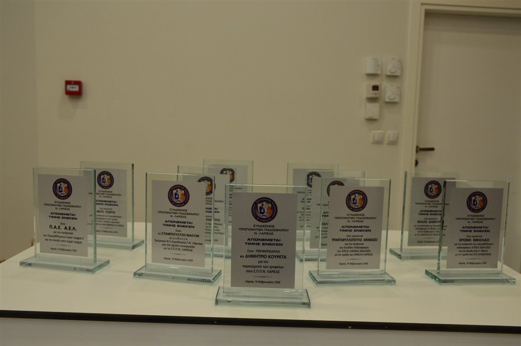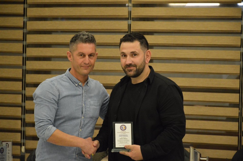 · Μάτος Γεώργιος (Αναγέννηση Ολύμπου- Β ΕΠΣΛ). Την πλακέτα παρέλαβε ο συνεργάτης του Δημήτρης Αλεξίου.