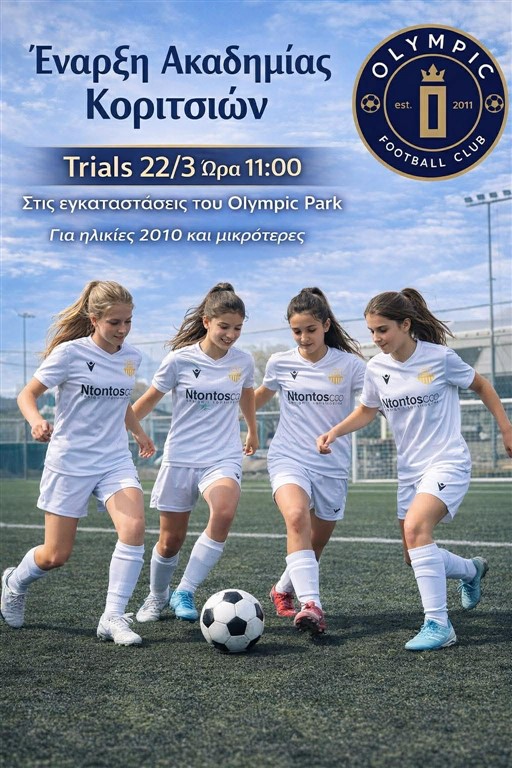 Διοργανώνουμε το πρώτο ποδοσφαιρικό trial για κορίτσια, με στόχο τη δημιουργία Τμήματος κοριτσιών στην ακαδημία μας και γυναικείας ομάδας