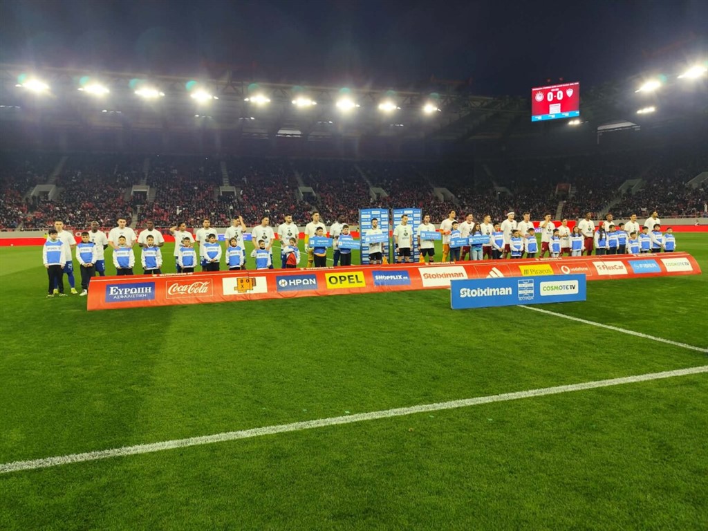 Οι ποδοσφαιριστές μας ως φιλοξενούμενοι από τους αντίστοιχους γηπεδούχους του Ολυμπιακού και οι διαιτητές, κατά την είσοδό τους στην παράταξη των ομάδων, φόρεσαν ειδικά μπλουζάκια και κράτησαν πινακίδες με μηνύματα κατά του ρατσισμού και πινακίδες θετικών μηνυμάτων, για την ανθρωπιά, την αλληλεγγύη, το σεβασμό, την ανεκτικότητα, τη διαφορετικότητα και την ισότητα.