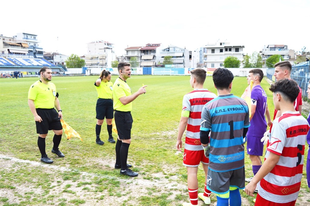 Στο 42’ ο Ιωάννης Μπελιμέζης εκτέλεσε το φάουλ, με τις γροθιές έδιωξε σε κόρνερ ο κίπερ της Εύβοιας. Τρία λεπτά μετά, ψηλοκρεμαστό σουτ του Αδαμόπουλου, η μπάλα πέρασε λίγο άουτ.