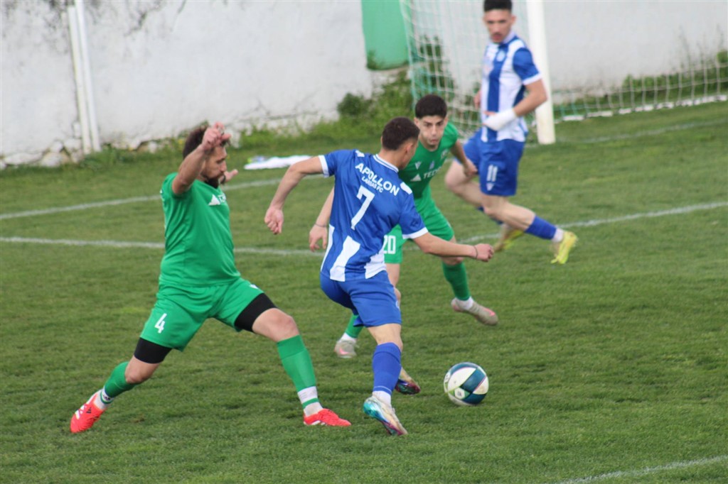 Προηγήθηκαν με εύστοχη εκτέλεση πέναλτι του Κωστούλα οι Απολλωνιστές, με τους γηπεδούχους να φέρνουν το παιχνίδι στα ίσια χάρη σε τέρμα του Παρασκευούδη.