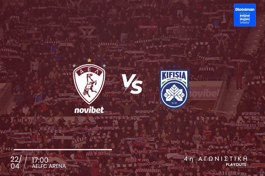Η ΠΑΕ ΑΕΛ Novibet ενημερώνει τους φιλάθλους της ότι ξεκίνησε η διάθεση των εισιτηρίων του αγώνα της 4ης Αγωνιστικής των Play Outs της Stoiximan Super League με αντίπαλο την Κηφισιά στο AEL FC ARENA (22/04, 17:00).