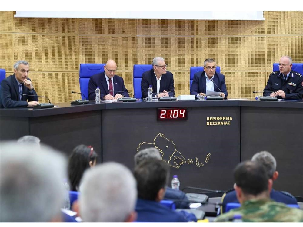 Ευρεία συντονιστική σύσκεψη για την προετοιμασία της αντιπυρικής περιόδου 2026 στην Περιφέρεια Θεσσαλίας πραγματοποιήθηκε σήμερα, Τρίτη 21 Μαρτίου 2026, στη Λάρισα παρουσία του Υπουργού Κλιματικής Κρίσης και Πολιτικής Προστασίας, κ. Ευάγγελου Τουρνά, σε συνεργασία με τον Περιφερειάρχη Θεσσαλίας, κ. Δημήτρη Κουρέτα. Σκοπός της σύσκεψης ήταν η ολοκληρωμένη επιχειρησιακή ετοιμότητα και ο αποτελεσματικός συντονισμός όλων των εμπλεκόμενων φορέων της Θεσσαλίας ενόψει της έναρξης της αντιπυρικής περιόδου.